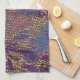 Blåa blommor mot lövkamouflagemönster kökshandduk