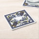 Blåa blommor och frukter i ram underlägg papper kvadrat