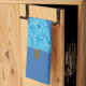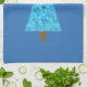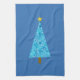 Blåa blommor på ett modernt Julgran Kökshandduk