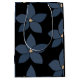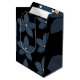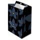 Med blåa blommor på en svart presentsäck i bakgrunden visningar du dina presenter på ett bra sätt.