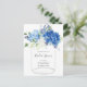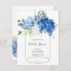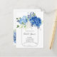 Rustic, men elegant Mason burk adornerades med vackert vattenfärgsvykort för blåa blommor och ribbon inbjudningskort för möhippan. En del av detaljerna finns i burk och resten finns på baksidan av vykortet.