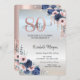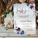 Blåa blommor Ro Guld Drips Silver 80:e födelsedage Inbjudningar