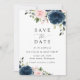 Vänner och familj i inbjudan i stil och ange tonen för din speciella dag med den här charmen spara datumkortet. Utformningen har marin och rosa vattenfärgblommor och grönt mot vit bakgrund.