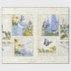 "Blåa blommor Solblommor Dragonfly Fransk Garden Collage Craiting Decoupage Wrapping Papper, tung vikt för möbelskrotning, väggkonst eller presentemballering." Det här är en serie målningsfärger i stil som skapats i oljepastel. Blå Delphinium-blommor och solblommor av elegant i ett kollage med blå fjärilar, drakflugor och en fågel i en trädgårdsmiljö. All grafik har målats av en internationellt licensierad artist och designer, Audrey Jeanne Roberts, copyright.