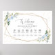 Lägg till en personlig beröring till bröllop firande med dessa snyggtar och minnesvärda party! Konstruktionen har blå och vit vattenfärg, grönt, guld konetti och guld ram på vit bakgrund.
