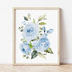Blåa blommor, Watercolor Flowers, Boy Nursery Fototryck