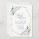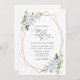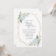 Inbjudan vänner och familj i stil och ange tonen för din speciella dag med den här charmerande bröllopsinbjudan. Konstruktionen har blå och vit vattenfärg, grönt, guld konetti och guld ram på vit bakgrund.