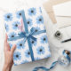 Blåa Daisy vid vitt Presentpapper