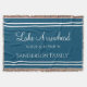 Knacka Blanket Chic Blue and White med sjö namn, din familjs namn och karta koordinater. Lakehouse modern, penselmanus, karta-koordinater, latitud longitud.