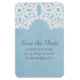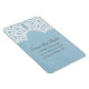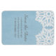 Enkel och sofistikerad Elegant Snöre Spara Premium Flexi Magnet med en vit snöre doily-motiv på en ljusblå vintage papper bakgrund. Denna klassiska magnet och snyggten är perfekten för att tillkännage ett rustiskt bröllop. Enkel att anpassa med din bröllop-information. Klicka på Anpassa om du vill söka efter fler anpassningsalternativ.