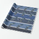 Ett vackert presentpapper med en blå och vit randig bakgrund och vackra blå fjädrar som kontrasterar.