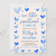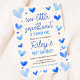 Inbjudan till vår lilla älsklings 1-årsfest med ett underbart tema med blåa hjärtan.