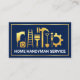 Ett allt blått lagrar accentueras av ett faux guld-rektangulärt ram med guld handyman-konstruktionen verktyg. Precis under den här designen ljuger din verksamhet namn. På andra sidan används samma designtema med en logotyp för guld-hammer som du kan använda högst upp. Detta följs av ditt prestigefyllda namn, kontaktinformationen och ett sloganalternativ för att publicera dina tjänster. Lettringen här är i Faux guld. En underbar utformning för handymans- och byggnadsteman. #ZazzleMade