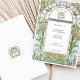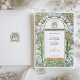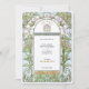 Den här häpnadsväckande bröllopsinbjudan, som inspirerats av Art nouveau, har ömtåliga blå och blommigtar med intrikat grönt på en mjuk himmel-blå bakgrund. Den unika och harmoniska utformningen framhävs av gyllene detaljer och flytande botaniskt inslag, vilket skapar en romantisk och tidlös känsla. Perfekt för trädgårdsbröllop, vintage eller elegant firande. Den här inbjudan tillför en del konst och sofistikering. Varje design är noggrant skapat och endast tillgänglig på Zazzle, vilket garanterar att bröllop-kontoret framträder som ett unikt konstverk.