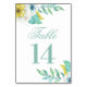 Blåa och gula blommor. Mint blomsterbröllop Bordsnummer