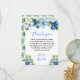 Blåa och marinblå blommor med löv Bröllopsdusch Tack Kort