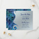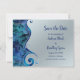 Texten på detta blåa och silver "reflektioner" som sparar datumet bröllop-kort är fullt anpassade. Kortets utformning inspireras av tropikarna, vatten, paua-snäckorna, vågar och reflektionerna. Perfekt för en strand- eller destinationsbröllop eller bröllop med ett blått och silver färg tema.