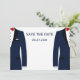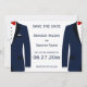 Blå och vita gaybröllops kortsvar "Spara datum"-kort med utbytbar text