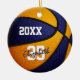 Färg basketbollens dekoration för pojkar och flickor i det här coolan har en realistisk tittar basket som har omväxlande blått och orange-färgade paneler - anpassa framsidan och baksidan av prydnadsföremål med år och spelarens namn i ett "autograph"-stil-typsnitt som ligger över idrottsmannens jersey-nummer - av katz_d_zynes