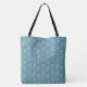 En väldigt söt Tote Bag, med en land-stil-fattig mönster av ljusblå Periwinkle-blommor på Royalet Blue-bakgrund. En del av "Periwinkle Patch"-samlingen Posh och Painterly kommer att passa vilken Tote Bag som helst och kan anpassas genom att rotera mönster eller ändra för ett helt annat utseende.