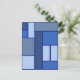Detta mönster är skapat i en stil som påminner om Piet Mondrian. Blå former, rutor och rektanglar konturerade med en ultramarinblå kant. Olika nyanser av blått inkluderar himmelblått, gråblått och azurblått. Denna abstrakta design fokuserar på form, figur och färg för att framkalla en emotionell reaktion, som talar till vår intuition, erfarenheter och det undermedvetna.