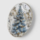 En vackert utformad blå Julgran med pärlliknande prydnadsföremål och guldfärgat snöflingor, mot en mjuk, texturerad bakgrund av vitt och guld. Konstruktionen fångar det centrala i vintern och skapar en glatt helgdag.