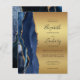 Den moderna bröllopsinbjudan från elegantens lämnat kant har en marin blå vattenfärgsagat gräns som trimmas med faux guld glitter. Anpassadet kombinerar svart handskrift, tryckplåt och kursivt typsnitt på guld-folie. Den omvända sidan har en matchande marin blå och guld-agate-design.
