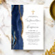 Den moderna bekräftelsemeddelandeinbjudan till det lämnat kant i eleganten har en blå vattenfärgsagat gräns som trimmas med faux guld glitter. En faux guld-folie kor visas ovanför anpassadet, som kombinerar handskrift, tryckplåt och kursivt typsnitt i kol-grått på vit bakgrund. Den omvända sidan har en matchande blå och guld-agate-design.