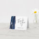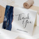 I elegant har det moderna bröllop-kortet en marin blå vattenfärgsagat gräns som trimmas med faux ro guld glitter. Anpassadet kombinerar ord "Tack" i handskriftsskript för kol-grått och namnen för bruden och groomen i kursivt teckensnitt på vit bakgrund.
