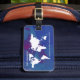 En underbar design för att identifiera dina tillhörigheter. Världens karta i blå abstrakt med all information om resenären.. skapar det lätt att lägga ut ditt bagage på karusellen. Med den här märkrn kan du enkelt hitta väskan och göra resan speciellt.