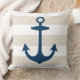 Snyggt- och chicens fyrkantiga accentkuddar är utformade på ett fyravitt och neutralt beige och Cabana-randig mönster med ett marint blått båtankare. Du kan anpassa beige-bakgrunden färg.