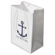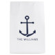 Modern Minimalist Nautical Gift Bag har marinblå ankare med personlig namn i marinblått modernt sans serif-teckensnitt stil på vit bakgrund. Perfekt för familjeåterförening, helgdag, party och alla särskilda händelser.