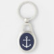 Modern minimalistisk Nautical Keychain med vit ankare i marin blå bakgrund.