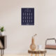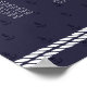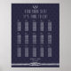 Nautiskt bröllop-sätesdiagram med vit ankarpunkt och anpassade vit text - du kan lägga till bridernas och rummens namn, bröllop-datum och gästernas namn (15 bord för 10 gäster vid varje bord), tryckt på marin blå bakgrund med ankarplats mönster. Teckenutskriften (poster) är 18 tum x 24 tum (lodrät).