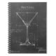 Blåavtryck av svart och vitt Martini-glas Anteckningsbok Med Spiral