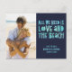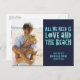 Få dina gäster upphetsade för din speciella dag med den här marinblå "Allt vi behöver är kärlek och stranden"-fotot som sparar vykortet för datum.