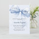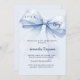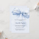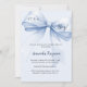 En mjuk, ljusblå bakgrund, dekorerad med en stor blå båge. Anpassa och lägg till information om namn och party. Det är en pojke!