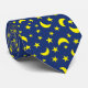 Gult måne och stjärnikoner i mörk blått bakgrund.