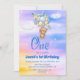 Vänner från inbjudan och närstående för att fira din pojke första födelsedag med denna söta nalle som håller blå ballonger medan de flyter genom en inbjudan från himlar.