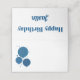 Kort med tre ballonger i blått. I utformningen ingår ord "Grattis på födelsedagen" och namn. Alla ord kan anpassas.
