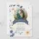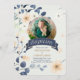 En söt Baptisminbjudan med ditt baby-foto, skapat i ett botaniskt vattenfärgstema och anpassningsbar i gult och blå blommar.