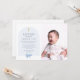 Tack till familj och vänner med den här moderna baptismen, tack vare att du har ett foto-layout med ett modernt blått tema. Anpassa med ditt pojke namn, ditt meddelande och bild. Perfekten hålls kvar efter en baptism eller doftning.