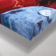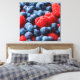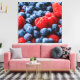 Utformningen har en nära bild av hallon och blåbär, som är friska frukter. Hallonbär är röda och blåbär är, som namn antyder, blå.