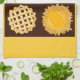 Blåbär och pumpa paj kökshandduk av Kristie Hubler, blåbär paj med lattice crust top och pumpa paj med konditoriet löv kant, perfekt för Thanksgiving, fall, helgdag eller bara dessert!