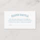 Designat att samordna med Lea Delaveris Design-skräddarduschsamlingen för spädbarn, är den här pappershuggen i biljett perfekt för speciella förfrågningar om babyduschgäster. Den enkla ljusblå texten i ett atletiskt teckensnitt lyder "blöjraffel" tillsammans med instruktionerna för skärande raffle. All text kan anpassas. Kortets baksida är en passande blåblå himmel som är perfekt koordinerad med babyduschinbjudningarna, party-tillbehören och dekorn i samlingen. Den här roligten och sportdesignen fungerar bra för en dusch i flicka och kan också användas med en mängd olika inbjudningar.