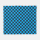 Blått och svart schackbrädemönster med jämnt fördelade rutor. Bilden förmedlar en känsla av ordning och symmetri med en livfull färgkontrast.