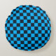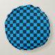 Blått och svart schackbrädemönster med jämnt fördelade rutor. Bilden förmedlar en känsla av ordning och symmetri med en livfull färgkontrast.