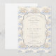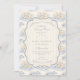 En söt vintageinspirerad design med ömtåliga blå band, mjuk randig detaljering och charmiga blåbärsträdgårdsillustrationer. Toile-mönstrad konst med söta djur och fruktkorgar skapar en klassisk sagobokskänsla i en mjuk pudrig blå palett. Den utsirade centrala ramen tillför elegans samtidigt som den håller det övergripande uttrycket lätt, raffinerat och tidlöst. Perfekt för en baby shower med ett mjukt trädgårdstema och en touch av traditionell charm.