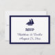 Anpassa den här OSAN med din bröllop-information. Dessa RSVP-program är perfekt för havsbottnar, havs-, kust-, havs-, strand- och destinationsbyggnader. Konstruktionen har en elegant marin blå gräns med ett fartygsmotiv.