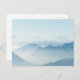 Det här vykortet har en vattenfärgsrendering av blå bergsområden.